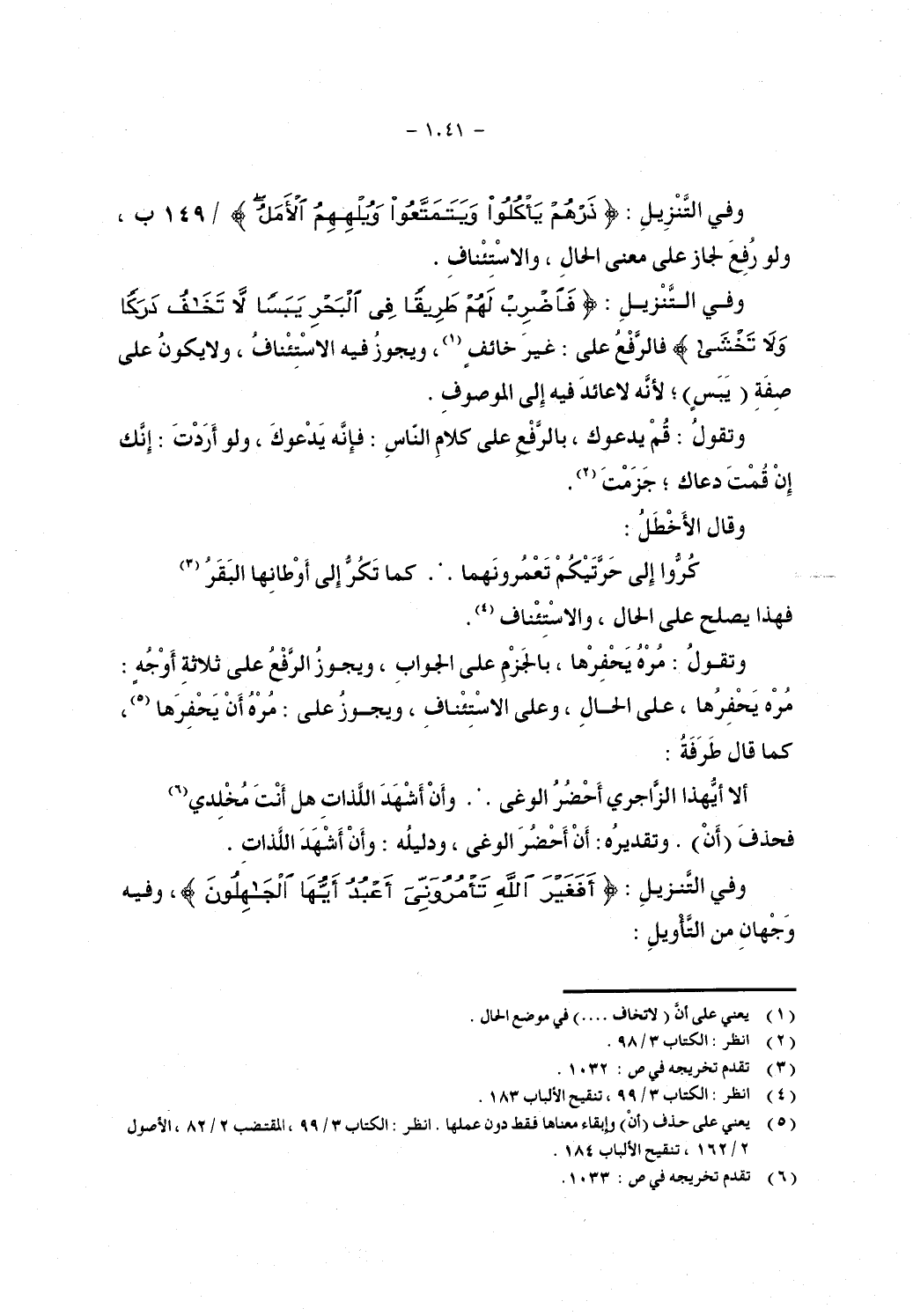 وفي التنزيل: {ذَرْهُمْ يَأْكُلُوا وَيَتَمَتَّعُوا وَيُلْهِهِمُ الأَمَلُ} /149 ب ولو رفع لجاز على معنى الحال, والاستئناف.