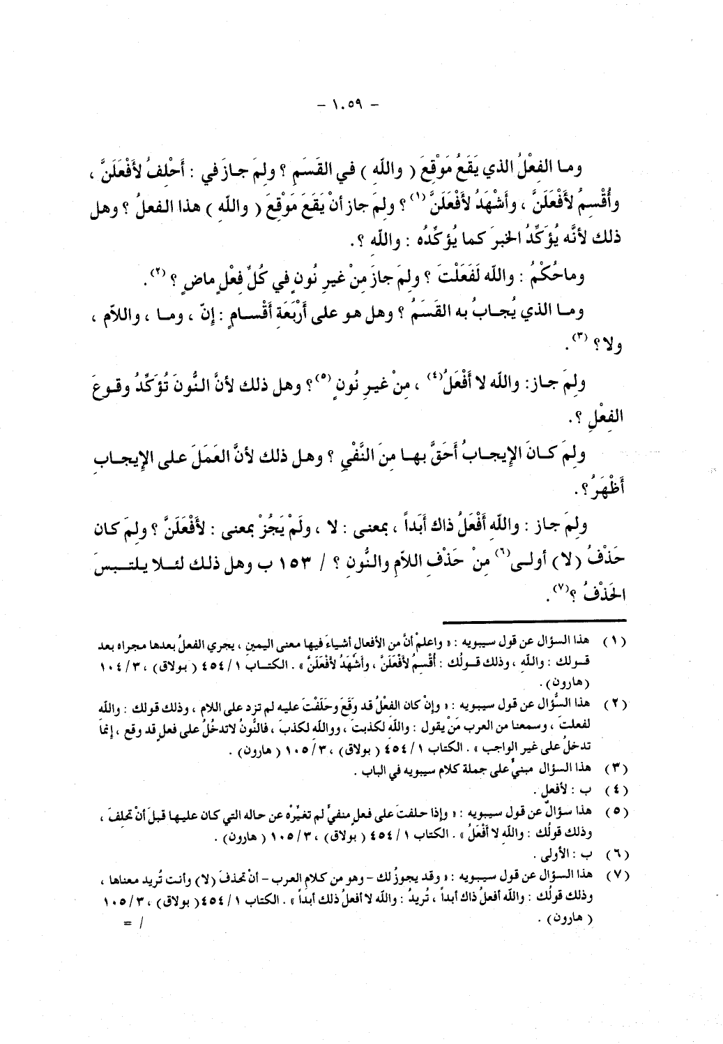 ولم جاز: والله أفعل ذاك أبدا, بمعنى لا, ولم يجز بمعنى: لأفعلن؟ ولم كان حذف (لا) أولى من حذف اللام والنون؟ /153 ب وهل ذلك لئلا يلتبس الحذف؟