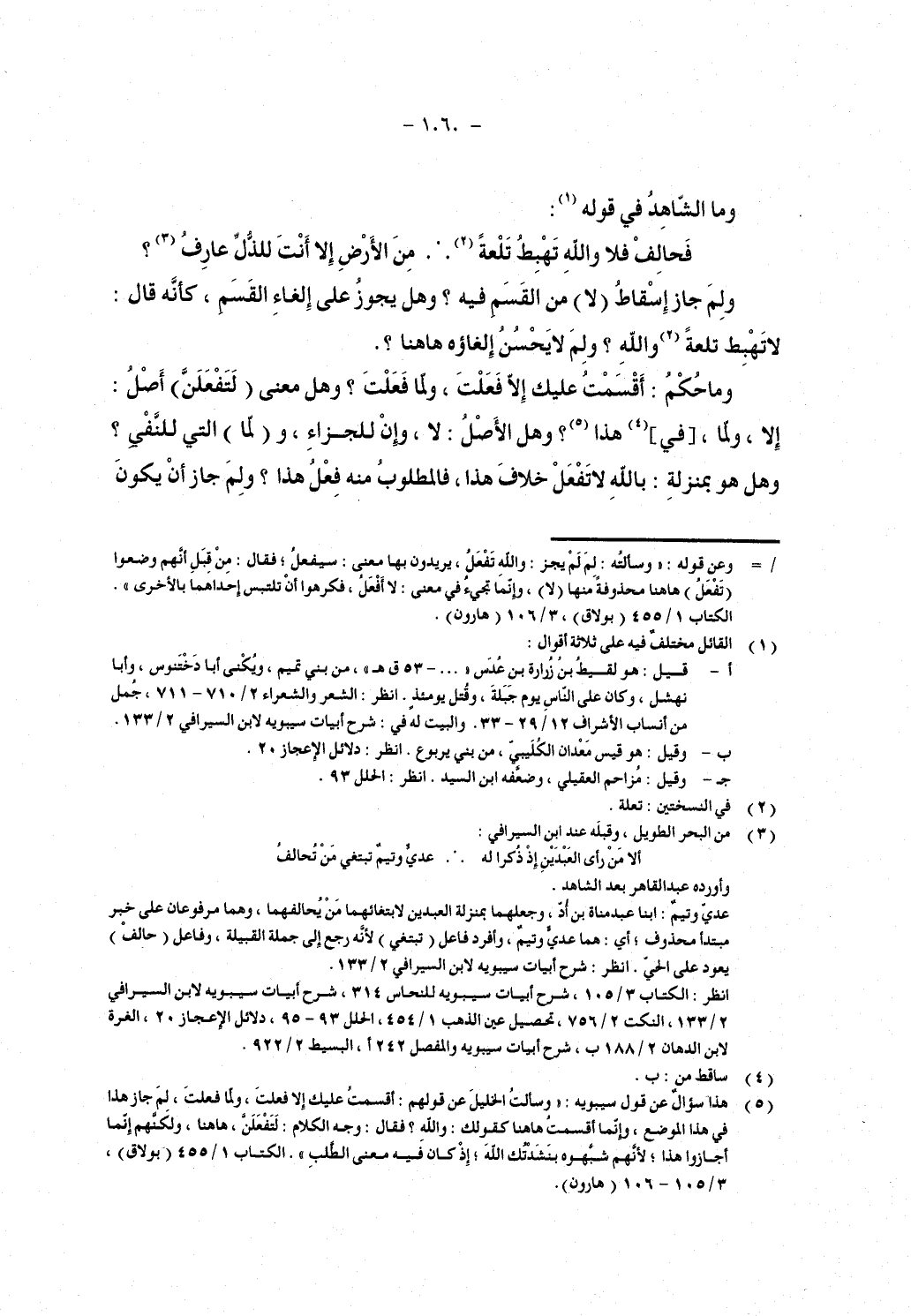 ولم جاز إسقاط (لا) من القسم فيه؟ وهل يجوز على إلغاء القسم, كأنه قال: لا تهبط تلعة والله؟ ولم لا يحسن إلغاؤه هاهنا؟