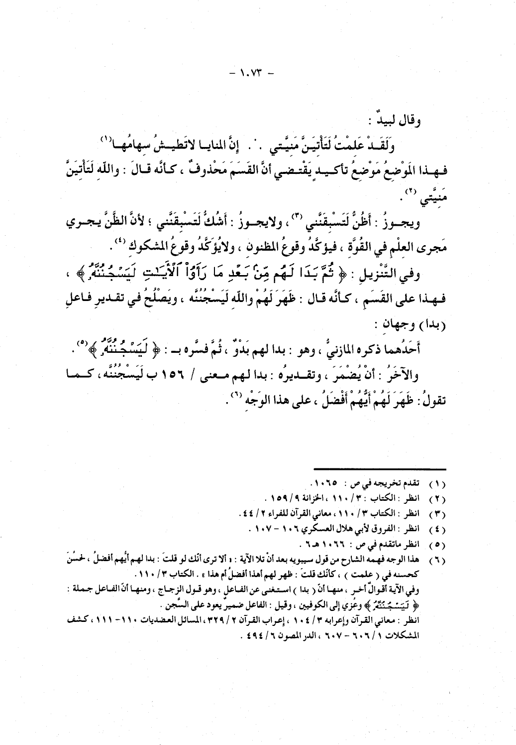 وفي التنزيل: {ثُمَّ بَدَا لَهُمْ مِنْ بَعْدِ مَا رَأَوُا الآيَاتِ لَيَسْجُنُنَّهُ} , فهذا على القسم, كأنه قال: ظهر لهم والله ليسجننه, ويصلح في تقدير فاعل (بدا) وجهان: