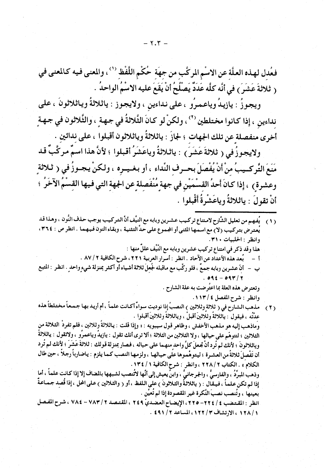 فعدل لهذه العلة عن الاسم المركب من جهة حكم اللفظ، والمعنى فيه كالمعنى في (ثلاثة عشر) في أنه كله هدد يصلح أن يقع عليه الاسم الواحد)