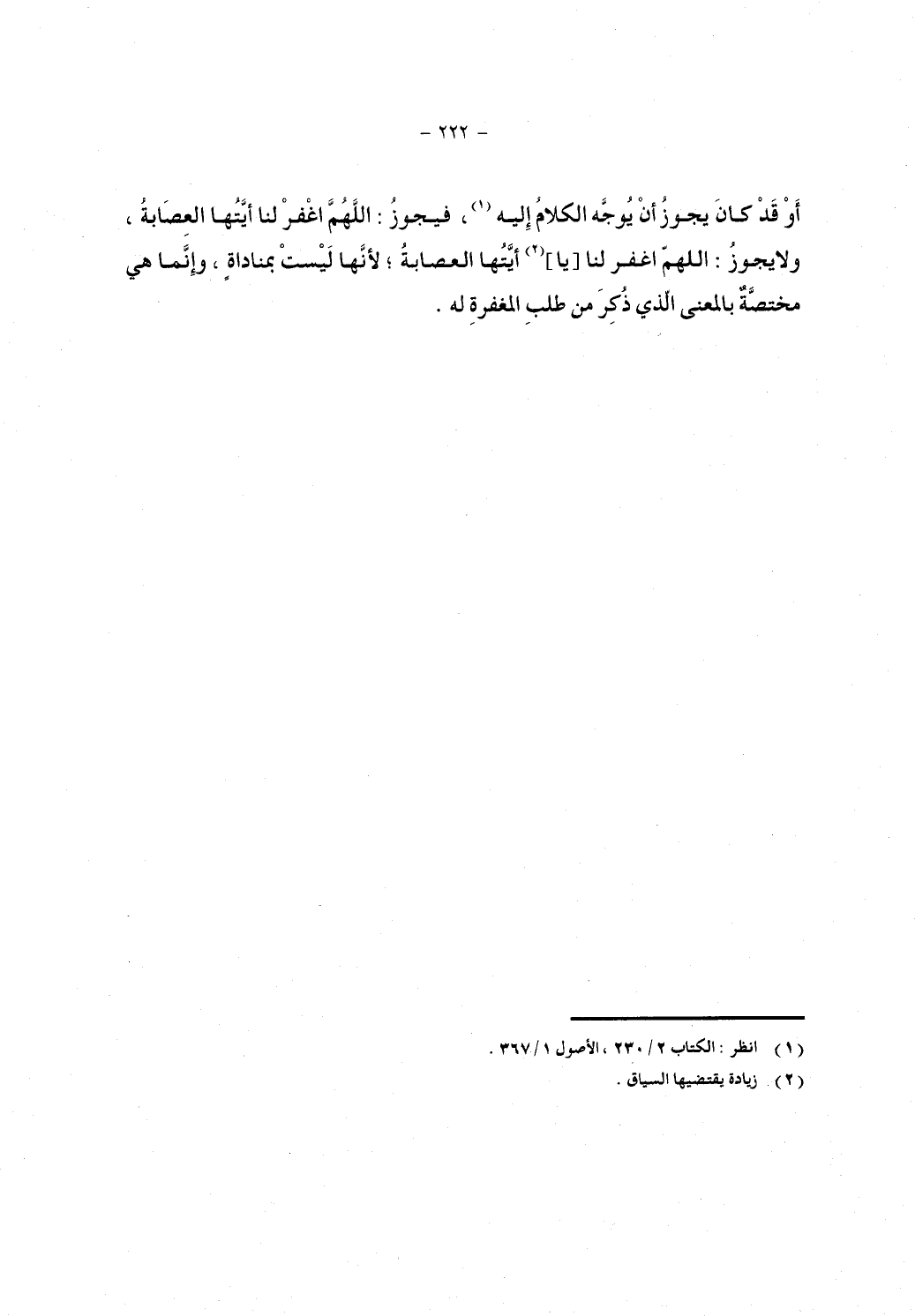 ولا يجوز: اللهم اغفر لنا [يا] أيتها العصابة؛ لأنها ليست بمناداة، وإنما هي مختصة بالمعنى الذي ذكر من طلب المغفرة له.
