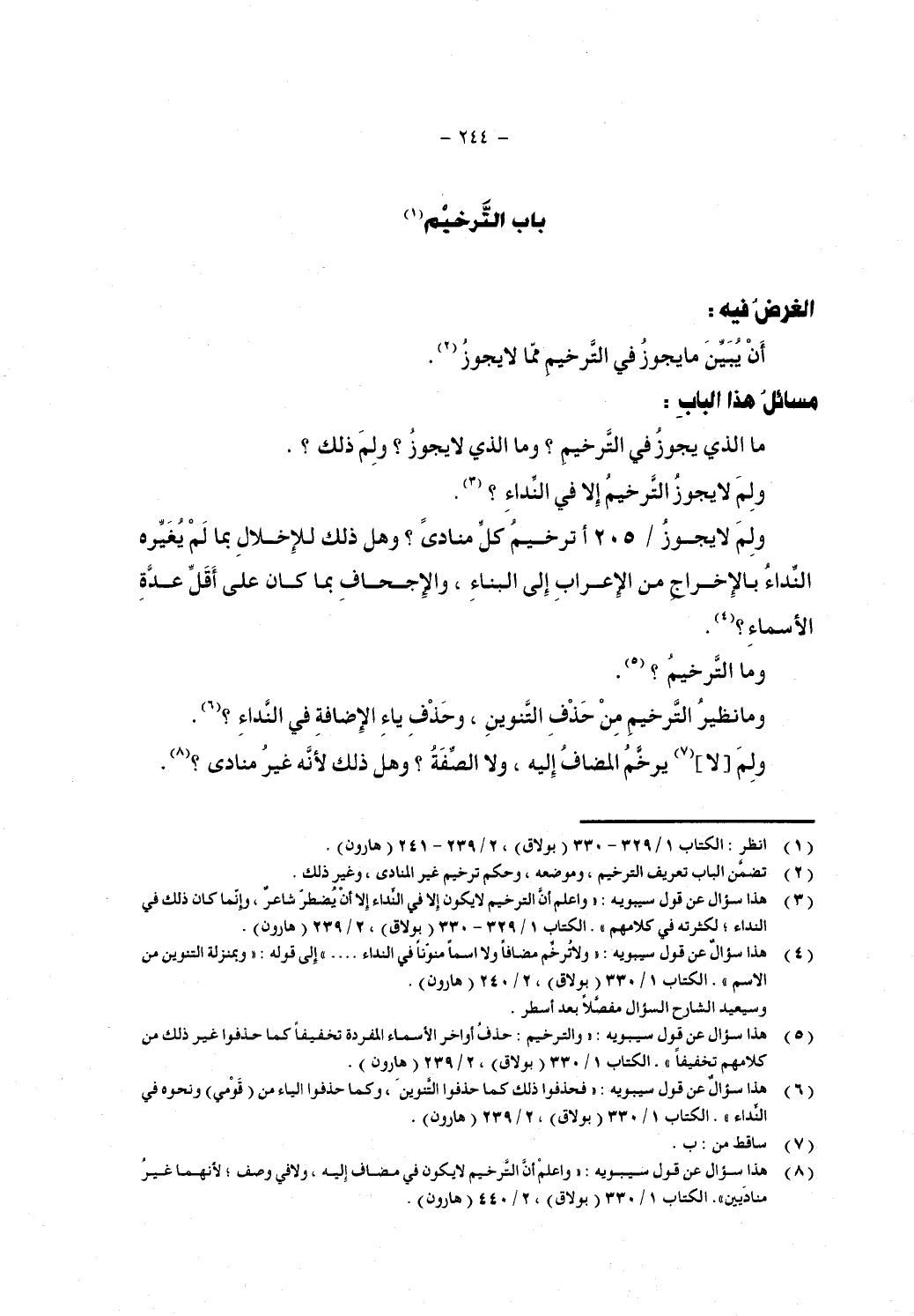 ولم لا يجوز/ 205 أترخيم كل منادي؟ وهل ذلك للإخلال بما لم يغيره النداء بالإخراج من الإعراب إلى البناء، والإجحاف بما كان على أقل عدة الأسماء؟