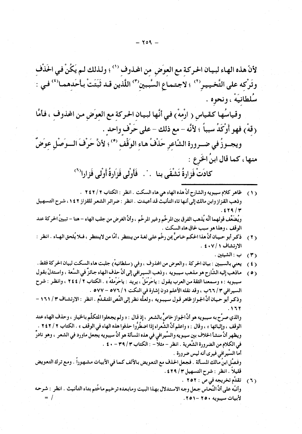 ويجوز في ضرورة الشاعر حذف هاء الوقف؛ لأن حرف الوصل عوض منها/كما قال ابن الخرع: