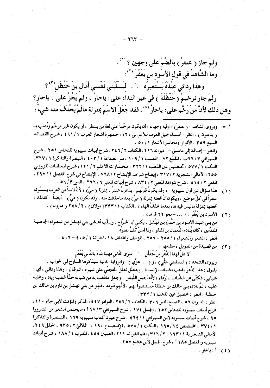 ولم جاز ترخيم (حنظلة) في غير النداء على: يا حار، ولم يجز على: يا حار؟ وهل ذلك لأن من رخم على: يا حار، فقد جعل الاسم بمنزلة ما لم يحذف منه شيء،
