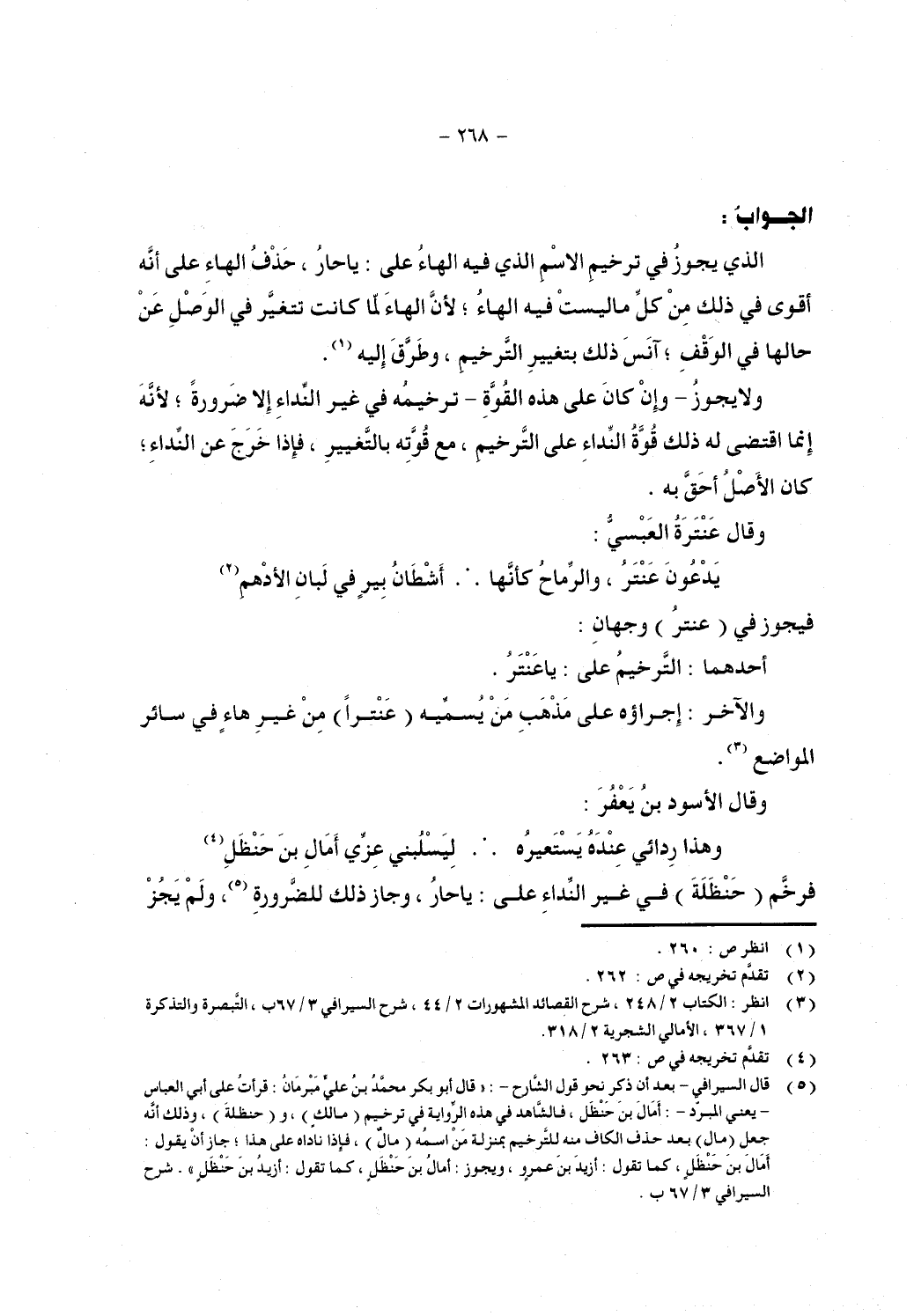 الذي يجوز في ترخيم الاسم الذي فيه الهاء على: يا حار، ت حذف الهاء على أنه أقوى في ذلك من كل ما ليست فيه الهاء؛ لأن الهاء لما كانت تتغير في الوصل عن حالها في الوقف؛ آنس ذلك بتغيير الترخيم، وطرق إليه.