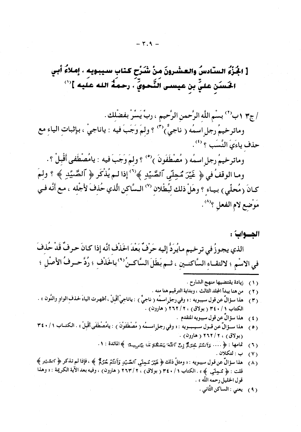 [الجزء السادس والعشرون من شرح كتاب سيبويه، إملاء أبي