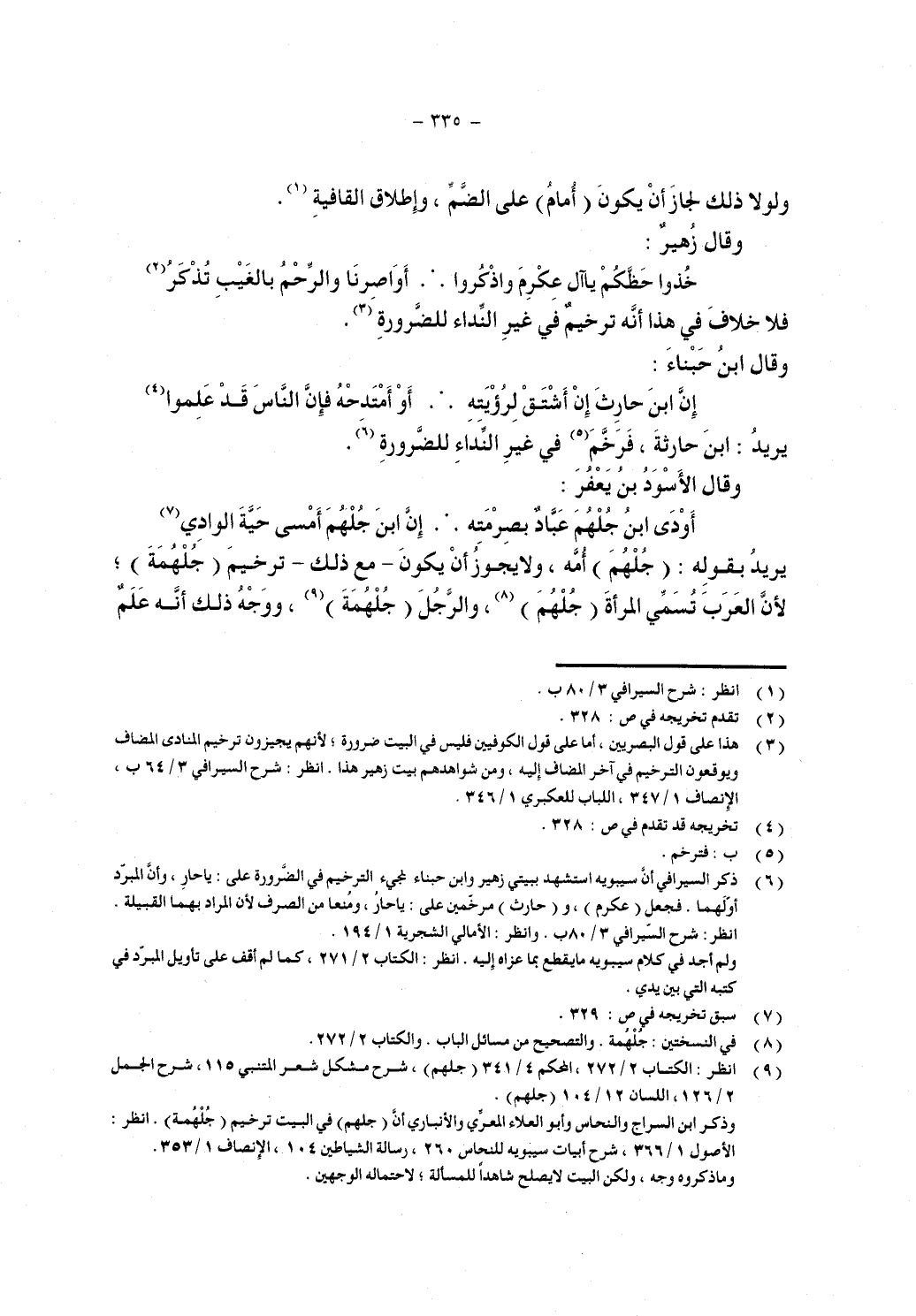 يريد بقوله: (جلهم) أمه، ولا يجوز أن يكون- مع ذلك- ترخيم (جلهمة)؛ لأن العرب تسمى المرأة (جلهم)، والرجل (جلهمة) ووجه ذلك أنه علم