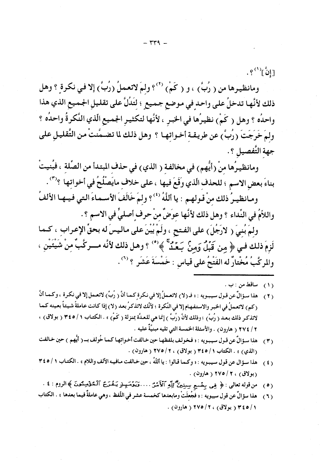 وما نظيرها من (رب)، و (كم)؟ ولم لا تعمل (رب) إلا في نكرة؟ وهل ذلك لأنها تدخل على واحد في موضع جميع؛ لتدل على تقليل الجميع الذي هذا واحده؟ وهل (كم) نظيرها في الخبر، لأنها لتكثير الجميع الذي النكرة واحده؟