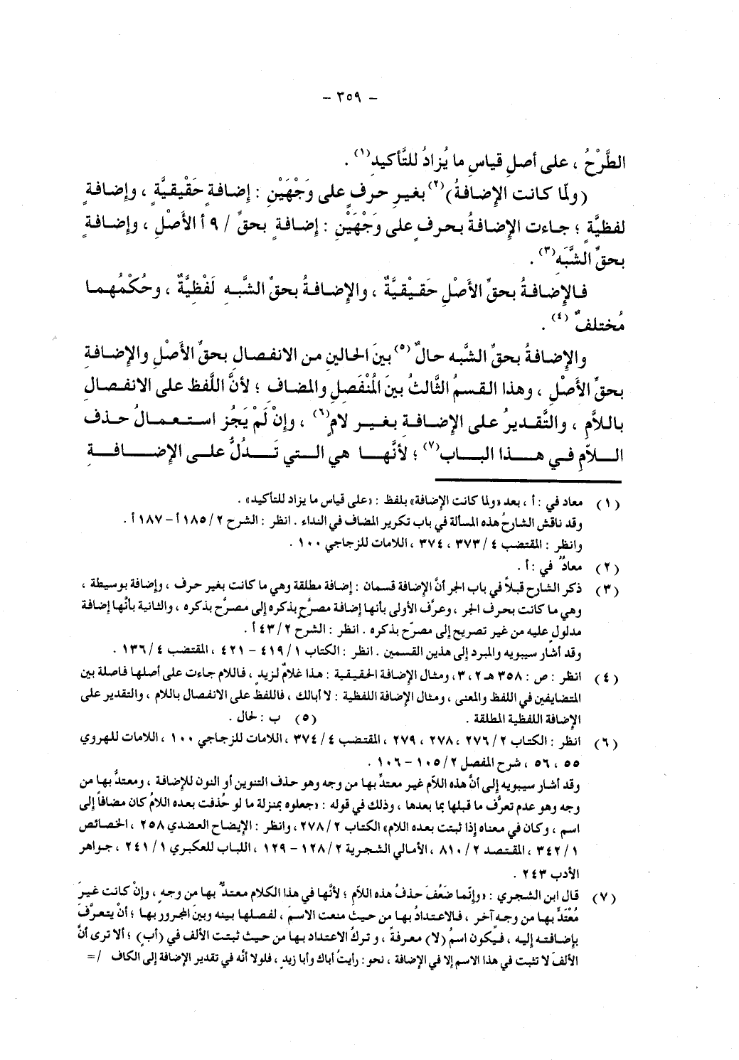 (ولما كانت الإضافة) بغير حرف على وجهين: إضافة حقيقية، وإضافة لفظية؛ جاءت الإضافة بحرف على وجهين: إضافة بحق /9 أالأصل، وإضافة بحق الشبه.