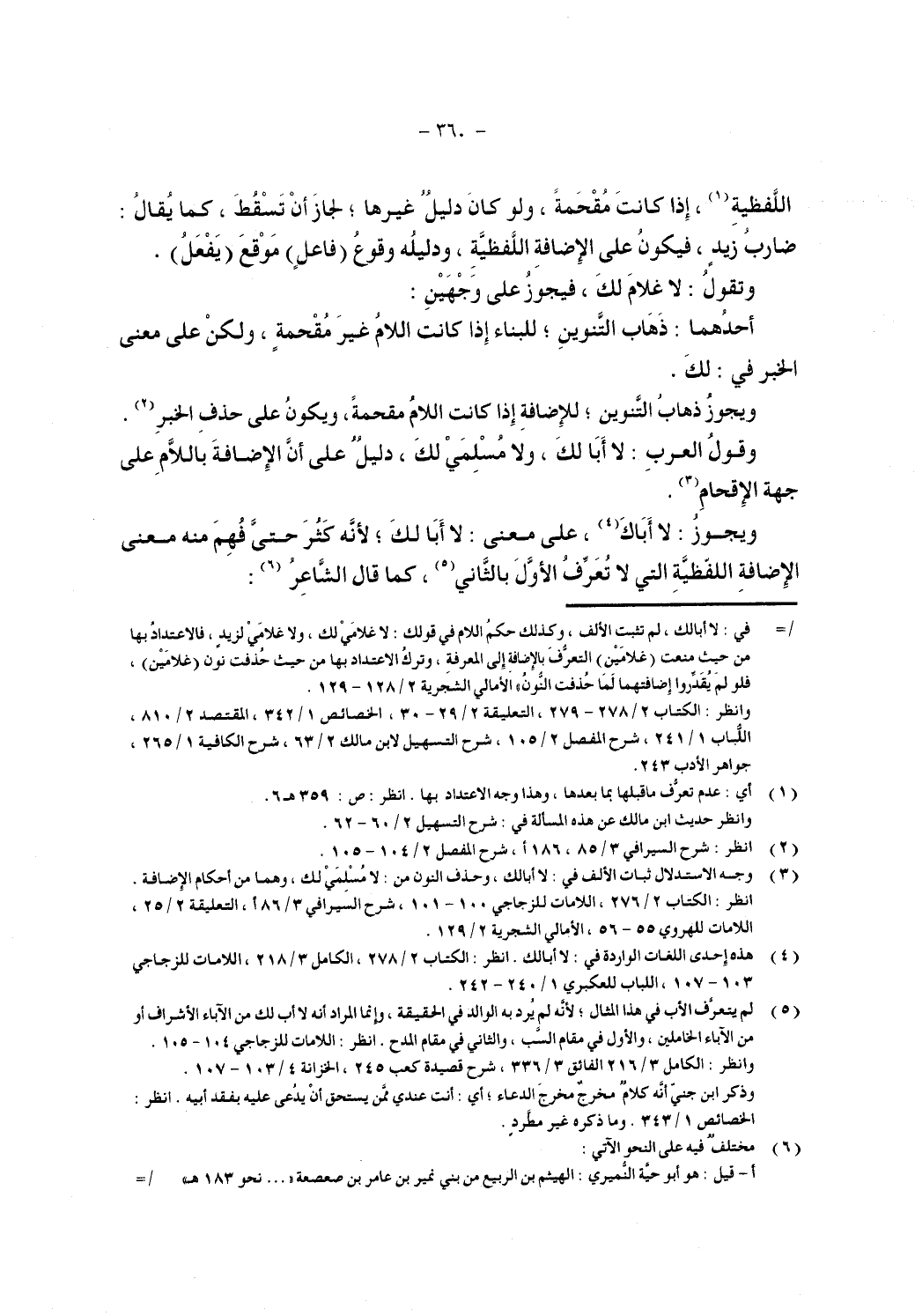 وقول العرب: لا أبا لك، ولا مسلمي لك، دليل على ان الإضافة باللام على جهة الإقحام.