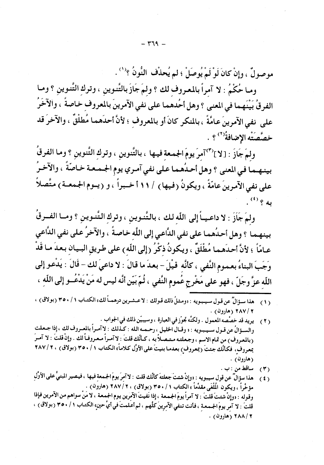 ولم جاز: [لا] آمر يوم الجمعة فيها، بالتنوين؟ وما الفرق بينهما في المعنى؟ وهل أحدهما على نفي آمري يوم الجمعة خاصة، والآخر على نفي الآمرين عامة، ويكون (فيها) خبرا، و (يوم الجمعة) متصلا به؟ .