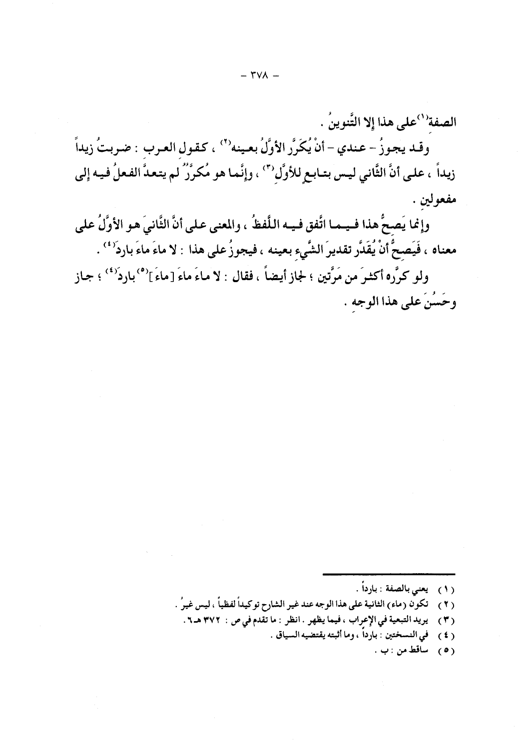 وإنما يصح هذا فيما اتفق فيه اللفظ، والمعنى على أن الثاني هو الأول على معناه، فيصح أن يقدر تقدير الشيء بعينه، فيجوز على هذا: لا ماء ماء بارد.