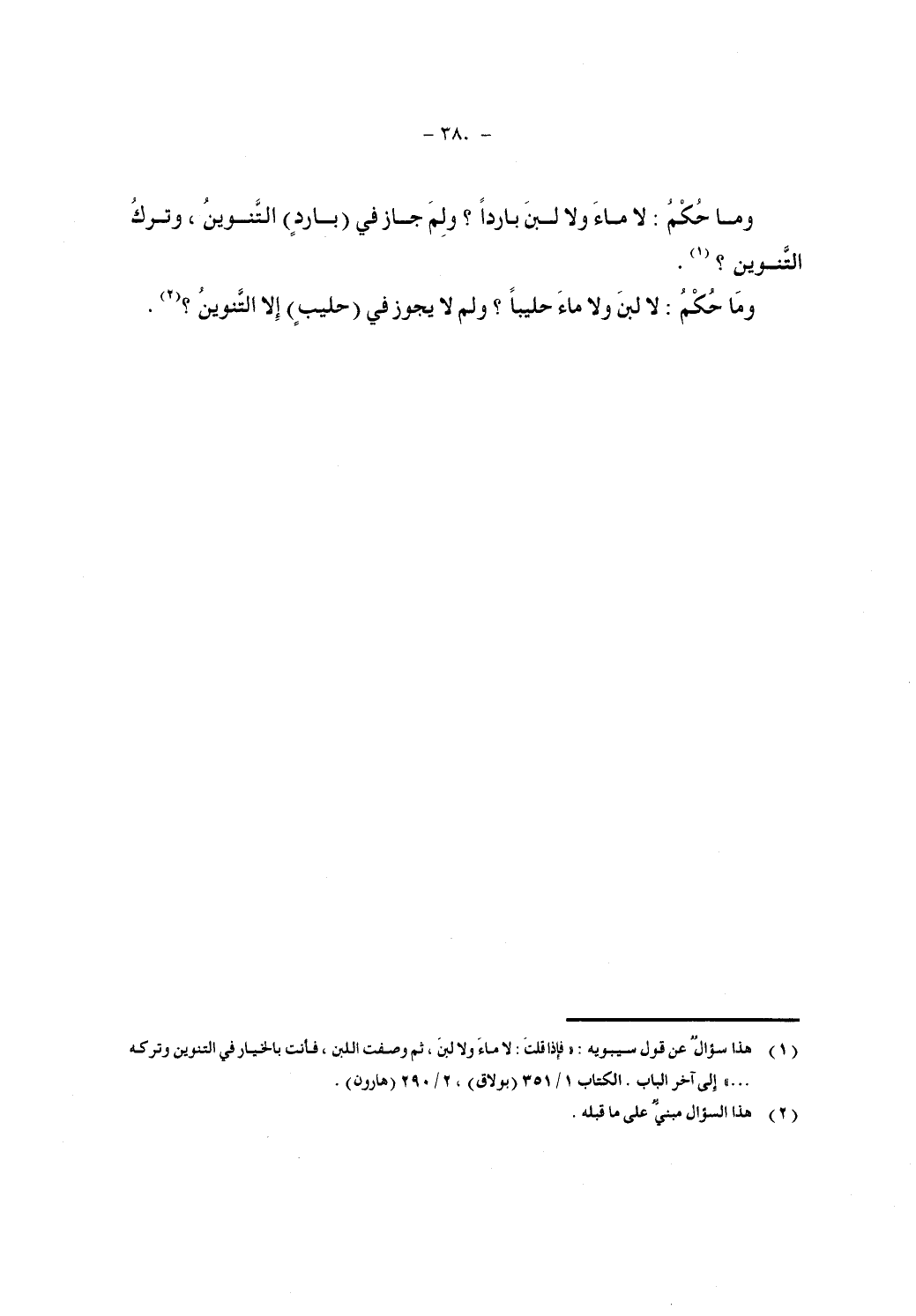 وما حكم: لا لبن ولا ماء حليبا؟ ولم لا يجوز في (حليب) إلا التنوين؟ .