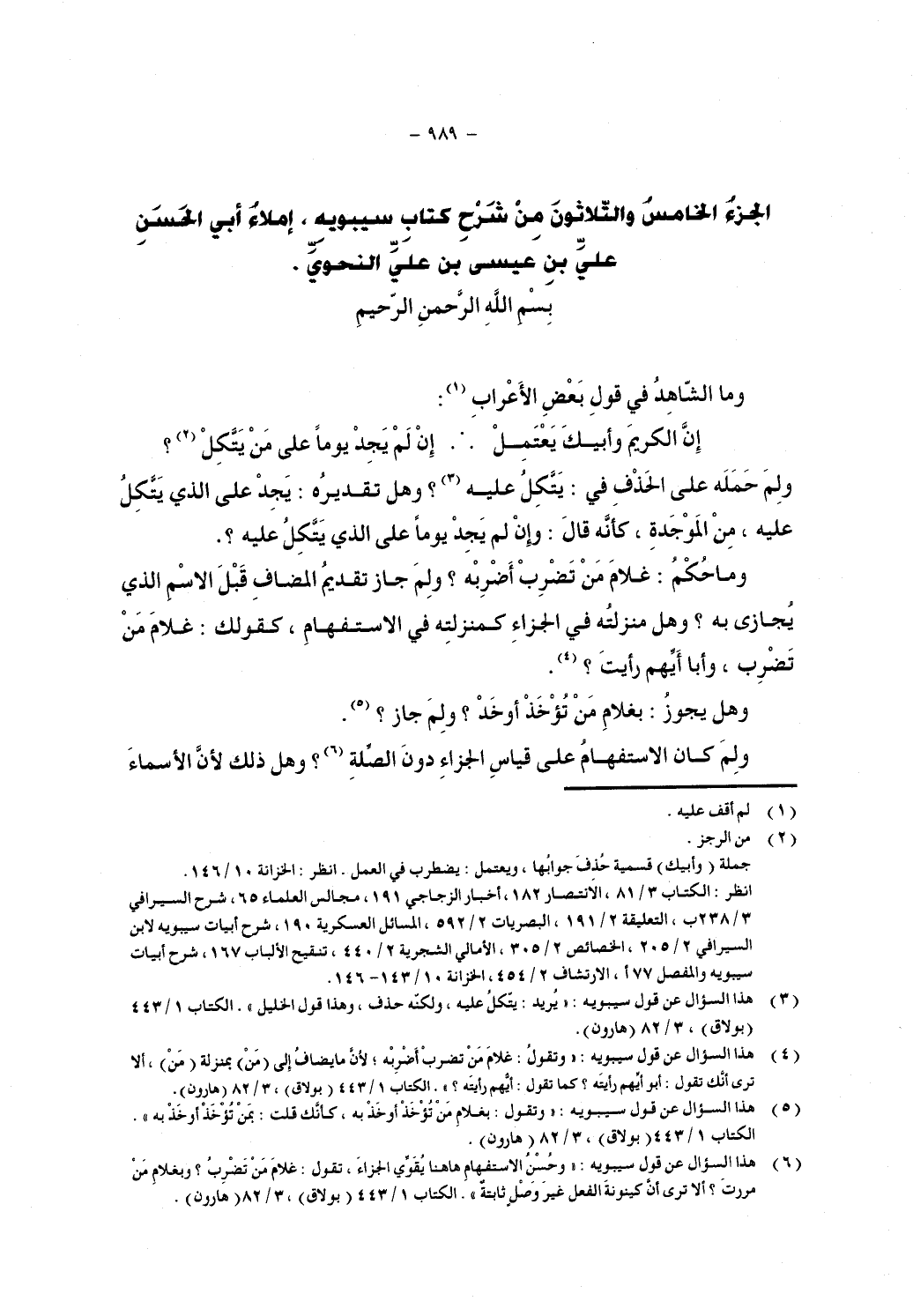 الجزء الخامس والثلاثون من شرح كتاب سيبويه, إملاء أبي الحسن علي بن عيسى بن علي النحوي.