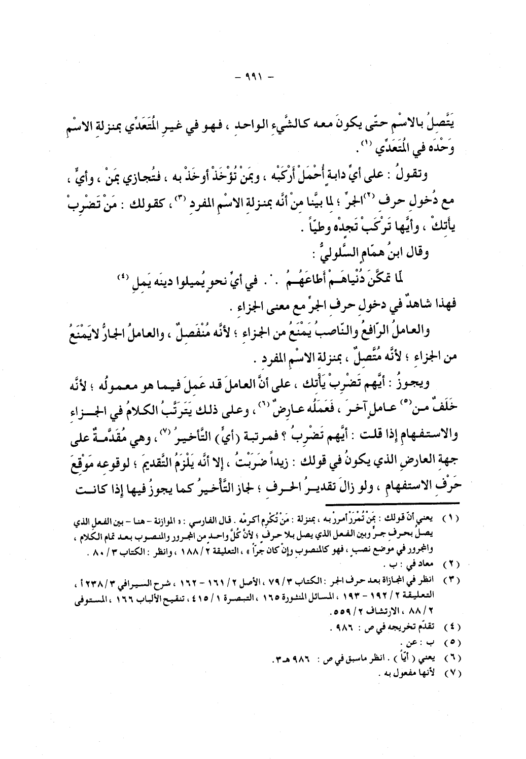 والعامل الرافع والناصب يمنع من الجزاء, لأنه منفصل, والعامل الجار لا يمنع من الجزاء, لأنه متصل, بمنزلة الاسم المفرد.