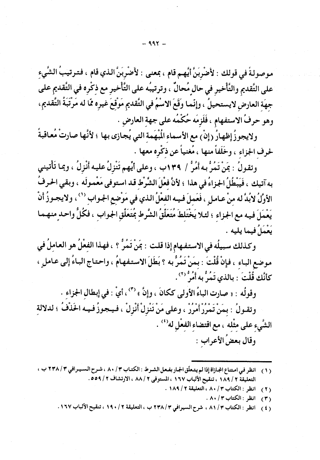 ولا يجوز إظهار (إن) مع الأسماء المبهمة التي يجازى بها, لأنها صارت معاقبة لحرف الجزاء, وخلفًا منها, ومغنيًا عن ذكره معها.