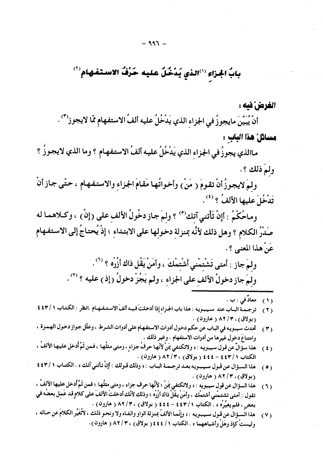 باب الجزاء الذي يدخل عليه حرف الاستفهام