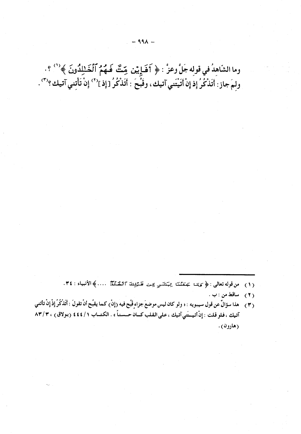 وما الشاهد في قوله جل وعز: {أَفَإِينْ مِتَّ فَهُمُ الْخَالِدُونَ}؟