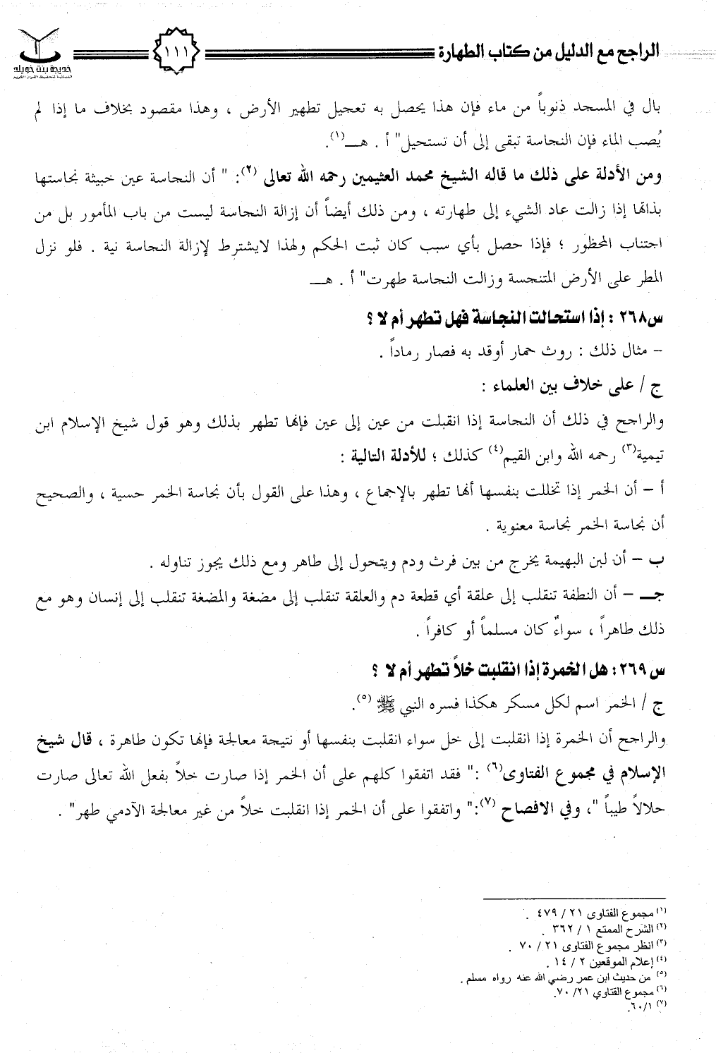 والراجح في ذلك أن النجاسة إذا انقلبت من عين إلى عين فإنها تطهر بذلك وهو قول شيخ الإسلام ابن تيمية (¬3) رحمه الله وابن القيم (¬4).