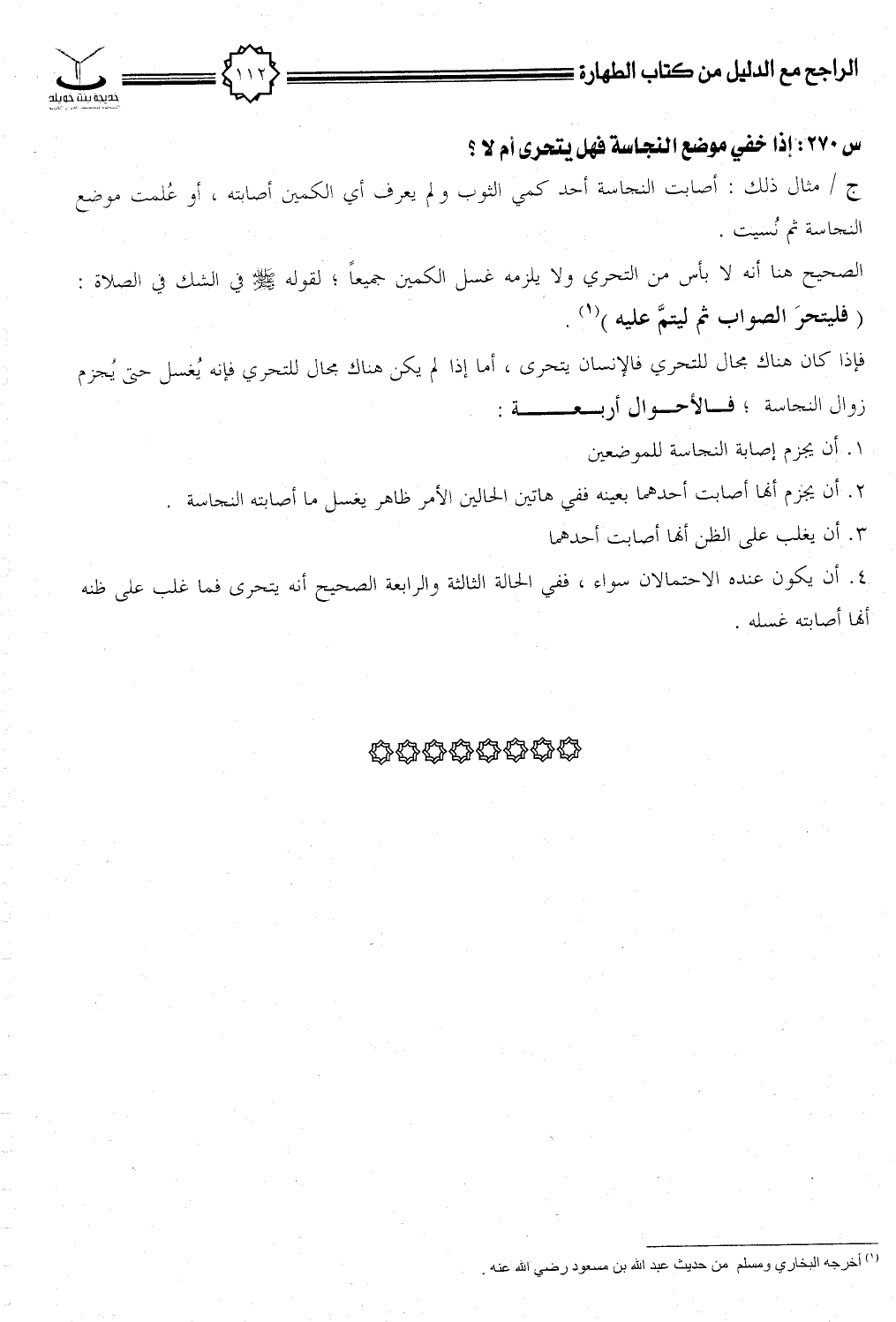 س270: إذا خفي موضع النجاسة فهل يتحرى أم لا؟