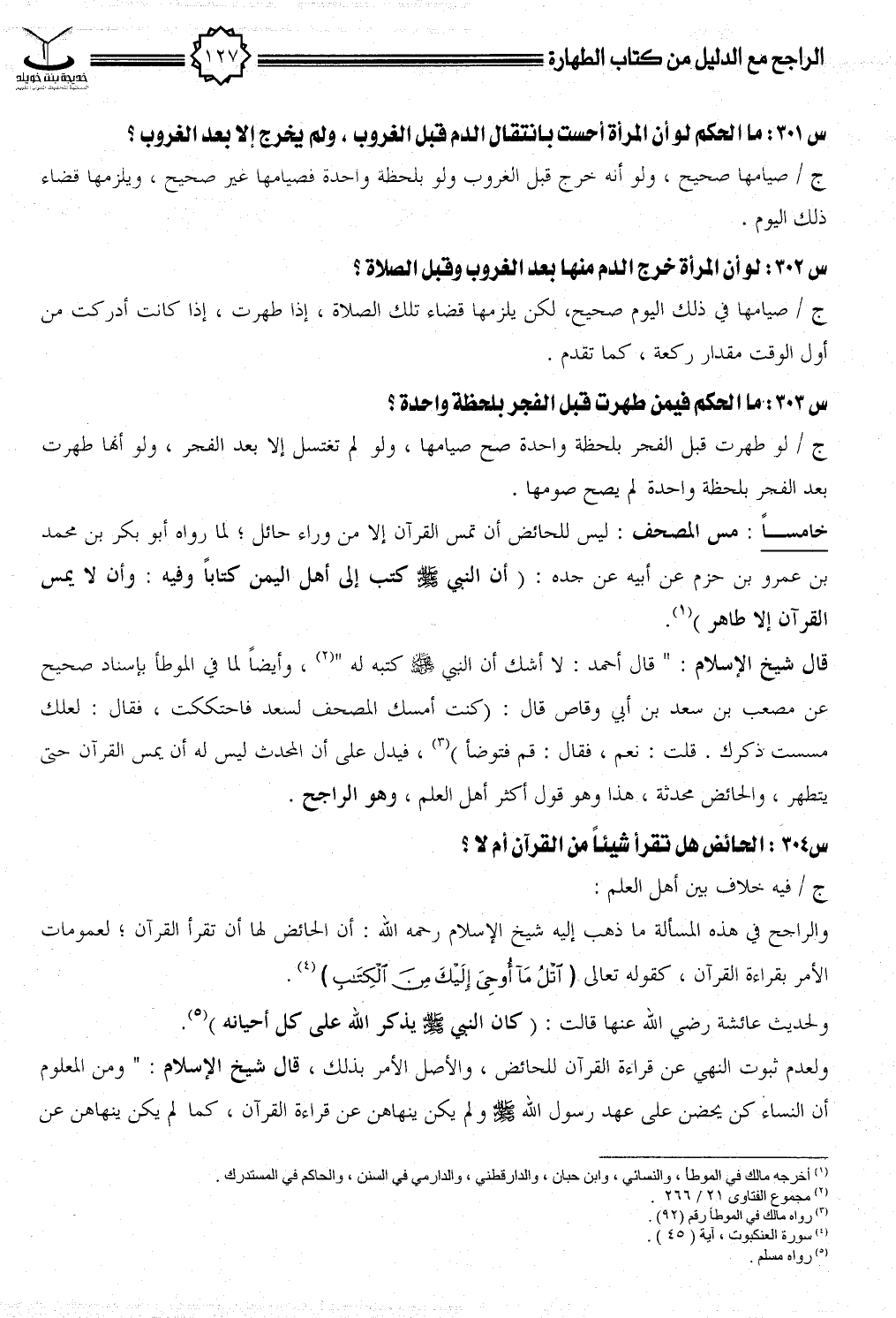 س304: الحائض هل تقرأ شيئاً من القرآن أم لا؟