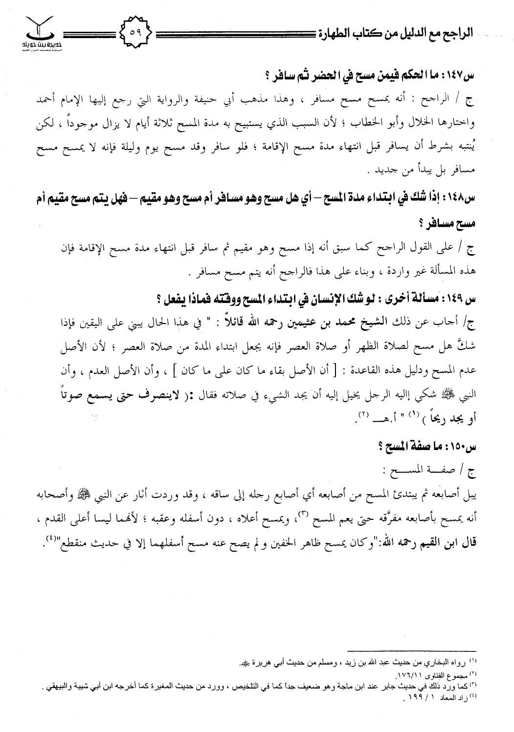 س148: إذا شك في ابتداء مدة المسح " أي هل مسح وهو مسافر أم مسح وهو مقيم " فهل يتم مسح مقيم أم مسح مسافر؟