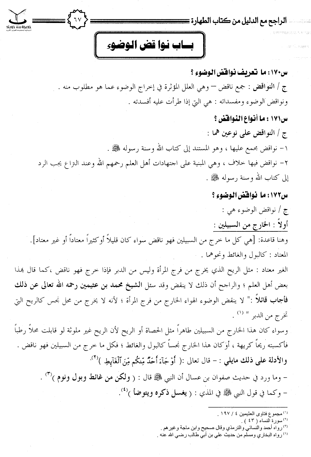 * وما ورد في حديث صفوان بن عسال أن النبي - قال - ولكن من غائط وبول ونوم - (¬3).