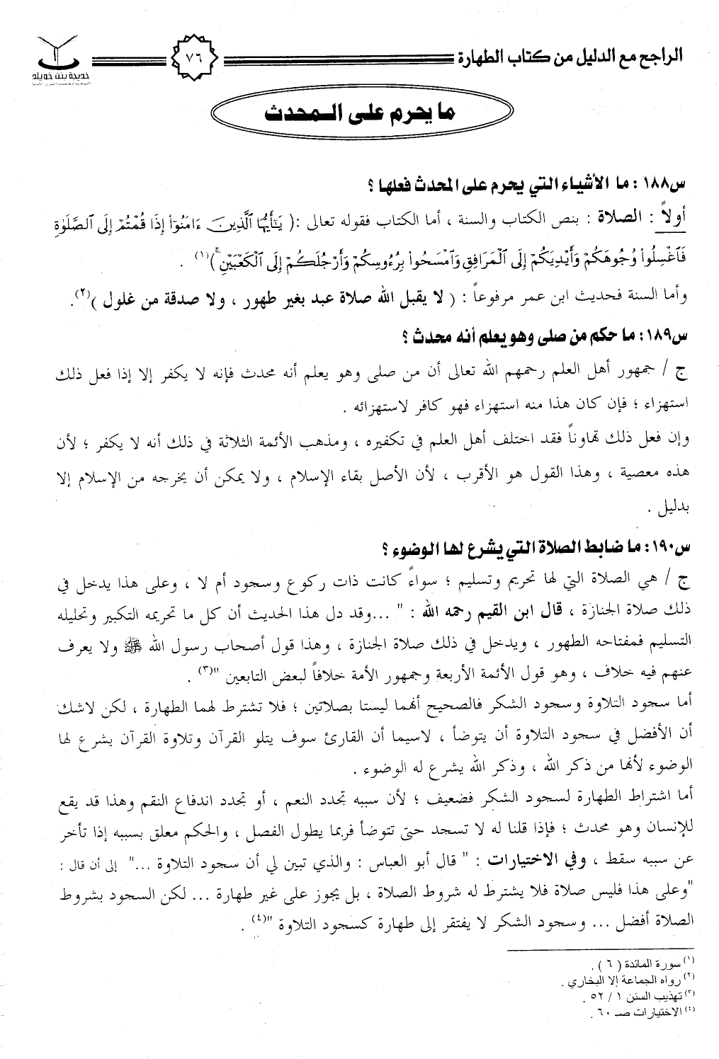 س188: ما الأشياء التي يحرم على المحدث فعلها؟
