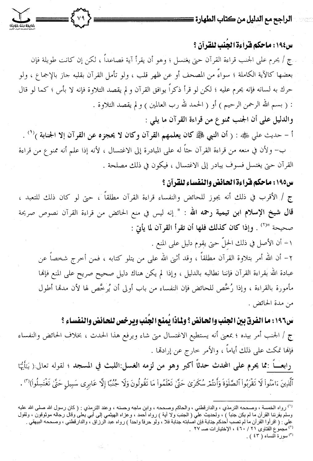 س195: ما حكم قراءة الحائض والنفساء للقرآن؟