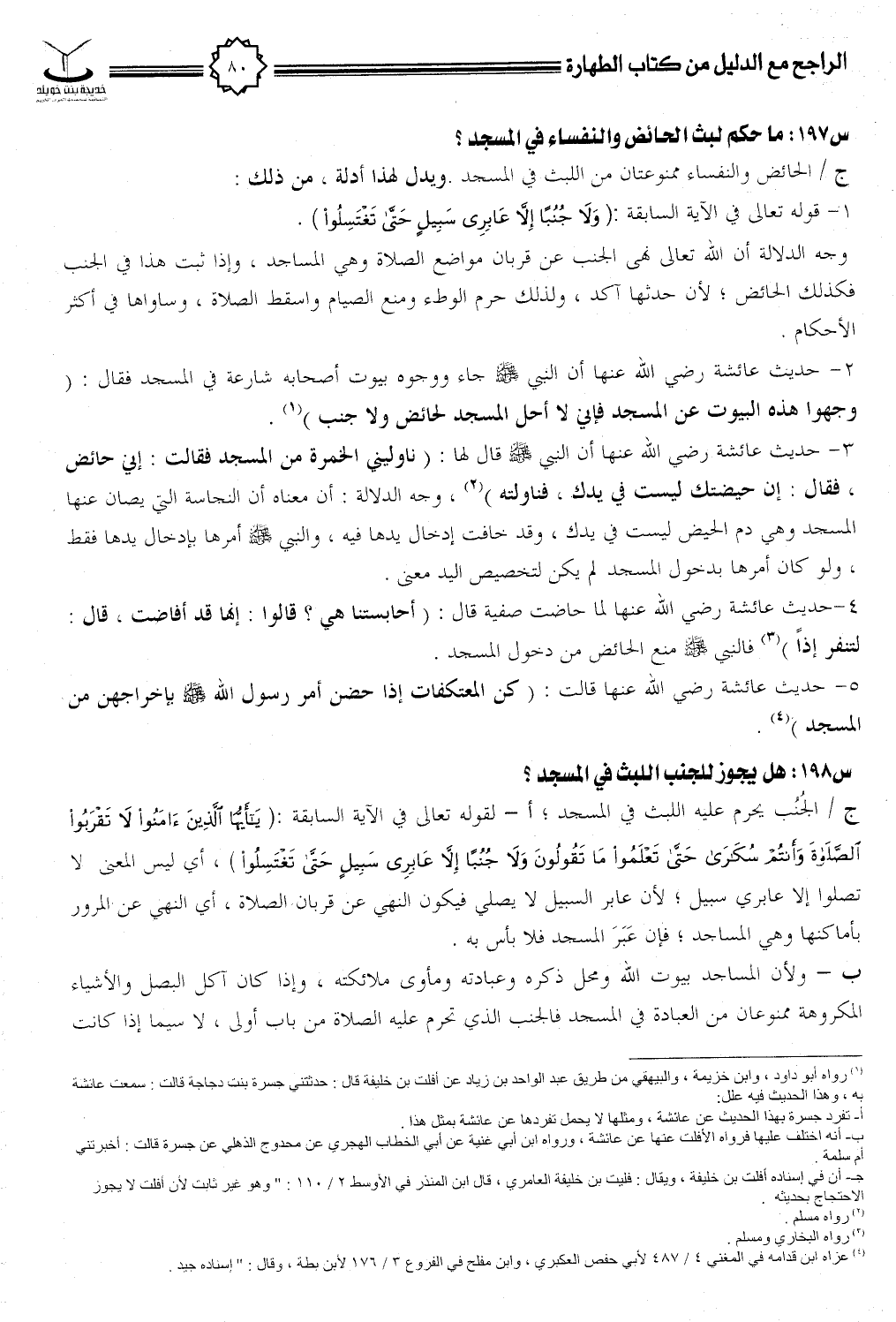 س197: ما حكم لبث الحائض والنفساء في المسجد؟