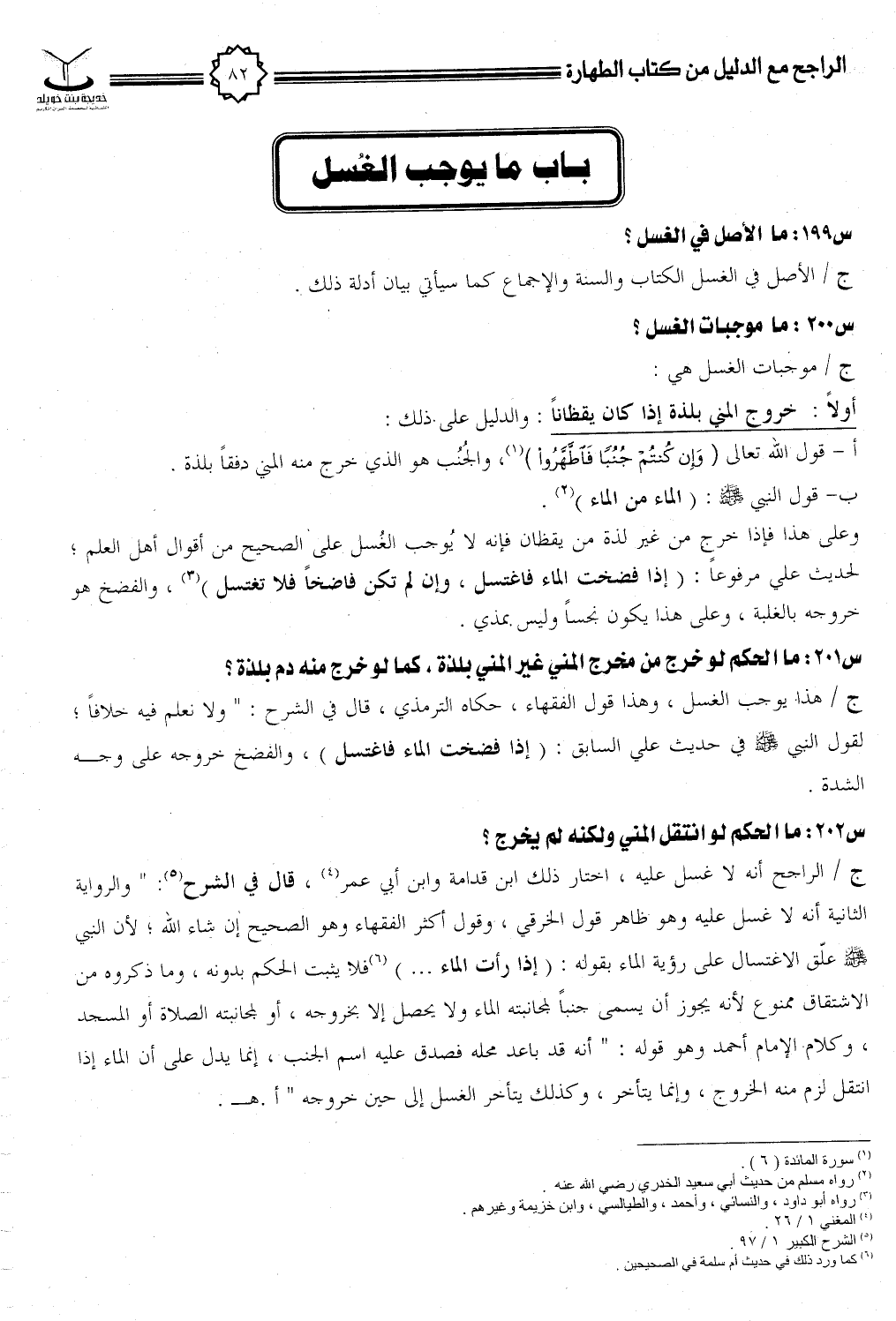 ج/ الأصل في الغسل الكتاب والسنة والإجماع كما سيأتي بيان أدلة ذلك.