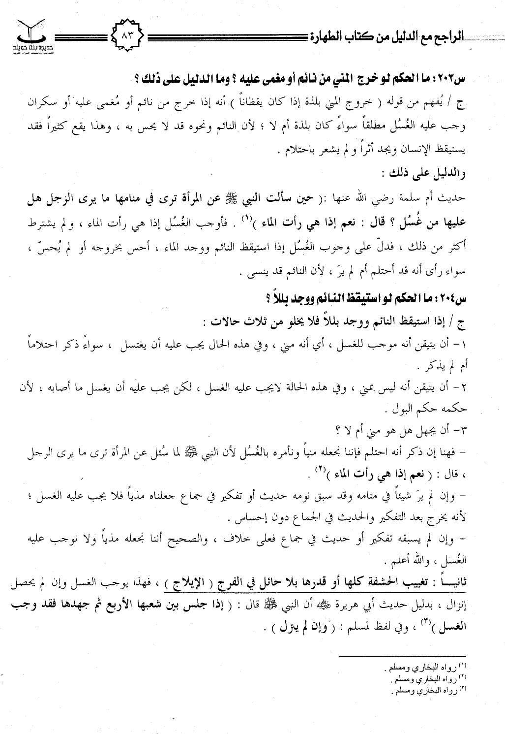س 203: ما الحكم لو خرج المني من نائم أو مغمى عليه؟ وما الدليل على ذلك؟