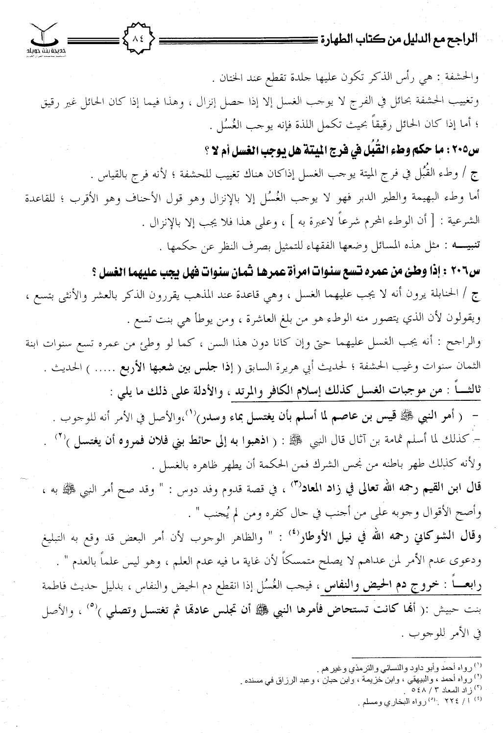 س206: إذا وطئ من عمره تسع سنوات امرأة عمرها ثمان سنوات فهل يجب عليهما الغسل؟