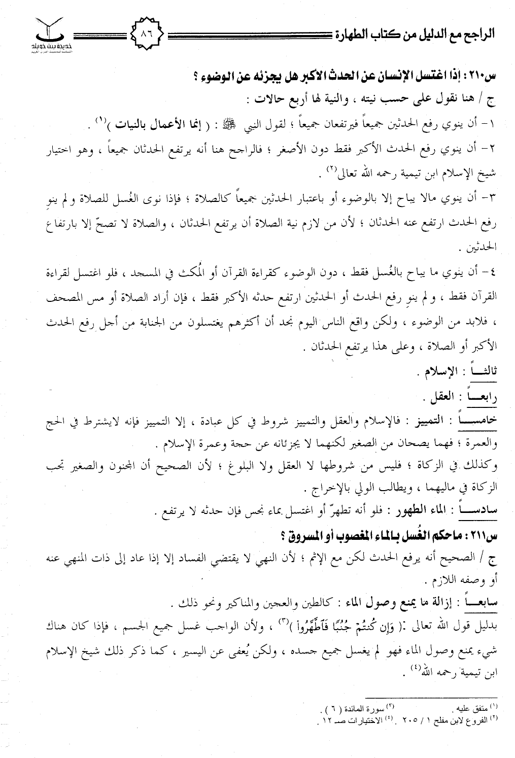 س210: إذا اغتسل الإنسان عن الحدث الأكبر هل يجزئه عن الوضوء؟