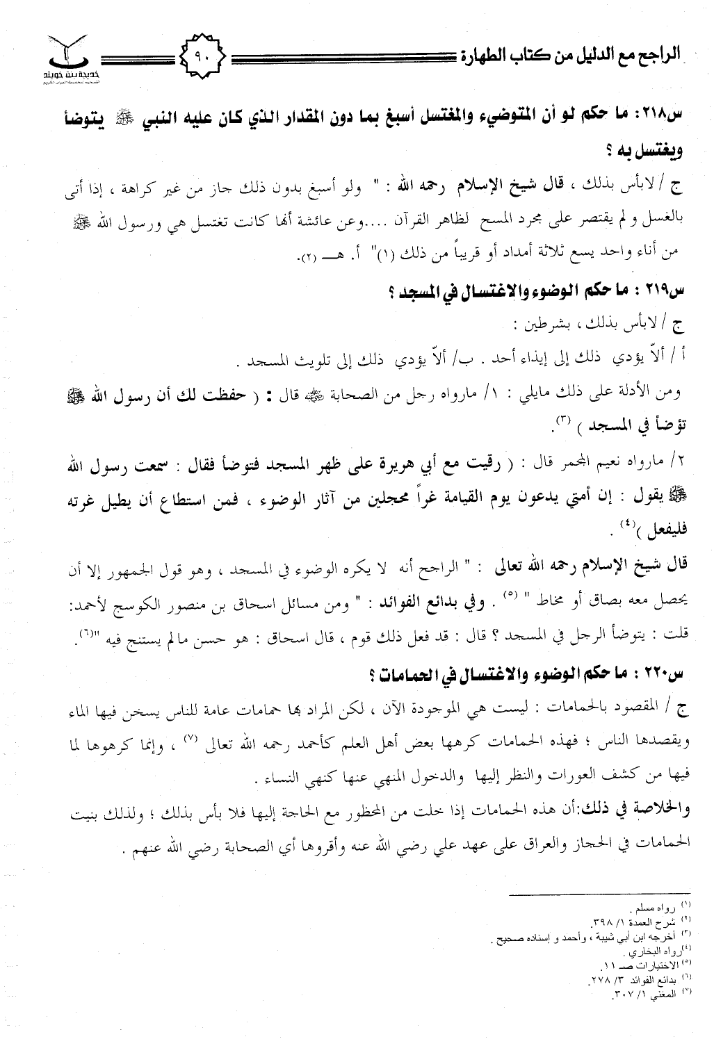 س219: ما حكم الوضوء والاغتسال في المسجد؟