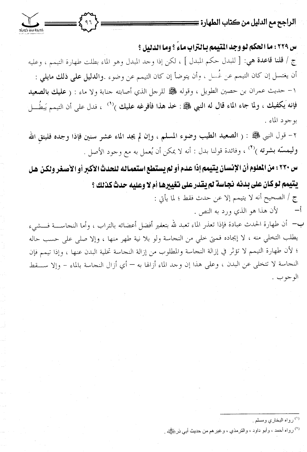 س229: ما الحكم لو وجد المتيمم بالتراب ماءً؟ وما الدليل؟