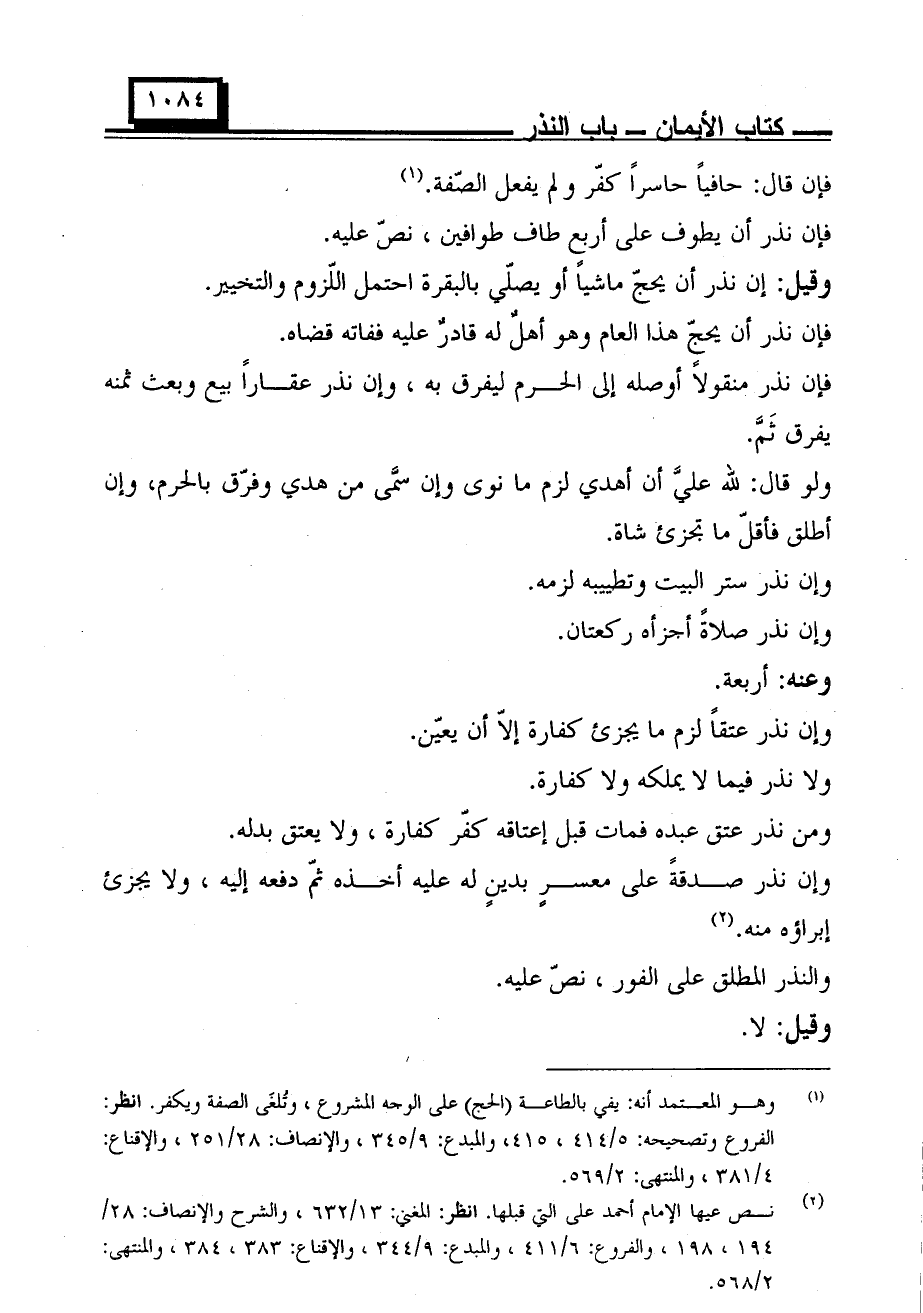فإن قال: حافيًا حاسرًا كفر ولم يفعل الصفة.