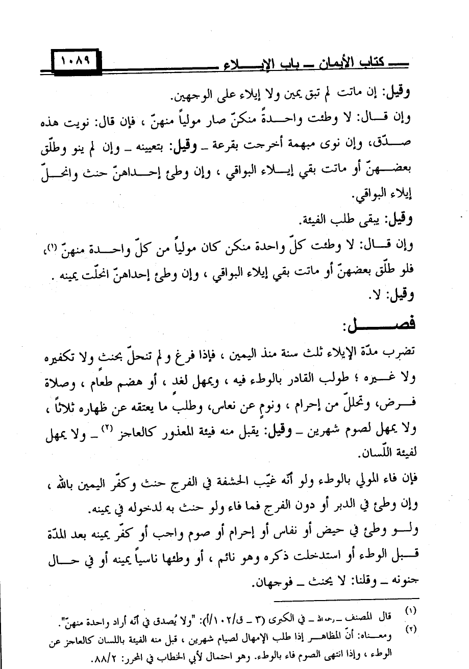 تضرب مدة الإيلاء ثلث سنة منذ اليمين، فإذا فرغ ولم تنحل بحنثٍ ولا تكفيره ولا غيره؛ طولب القادر بالوطء فيه، ويمهل لغدٍ، أو هضم طعام، وصلاة فرض، وتحلل من إحرام، ونومٍ عن نعاس، وطلب ما يعتقه عن ظهاره ثلاثًا، ولا يمهل لصوم شهرين -وقيل: يقبل منه فيئة المعذور كالعاجز -ولا يمهل لفيئة اللسان.