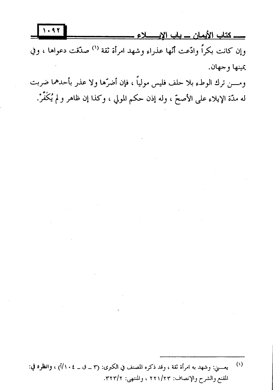 وإن كانت بكرًا وادعت أنها عذراء وشهد امرأة ثقة صدقت دعواها، وفي يمينها وجهان.