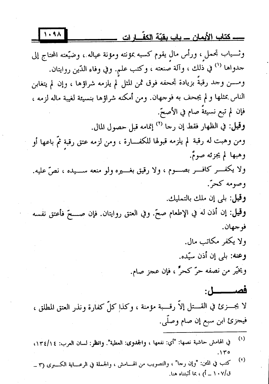 ومن وجد رقبةً بزيادة تجحفه فوق ثمن المثل لم يلزمه شراؤها، وإن لم يتغابن الناس بمثلها ولم يجحف به فوجهان. ومن أمكنه شراؤها بنسيئة لغيبة ماله لزمه، فإن لم تبع نسيئةً صام في الأصح.
