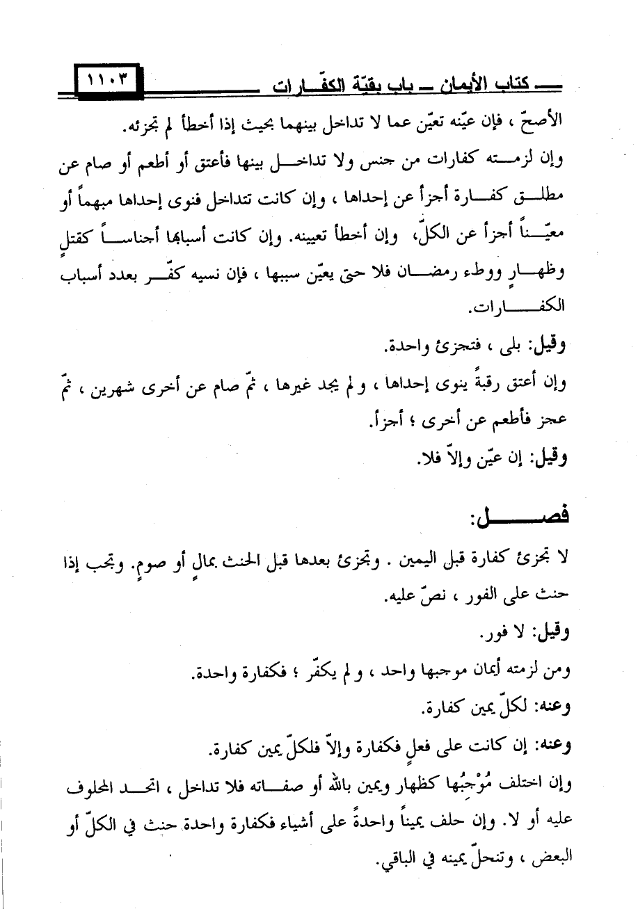فصل: لا تجزئ كفارة قبل اليمين. وتجزئ بعدها قبل الحنث بمال أو صوم. وتجب إذا حنث على الفور، نص عليه.