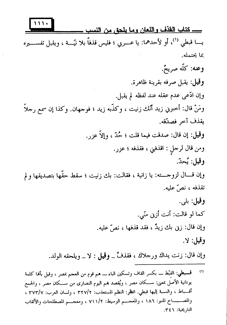 يا قطبي، أو لأحدهما: يا عربي؛ فليس قذفا بلا نية، ويقبل تفسيره بما يحتمله.