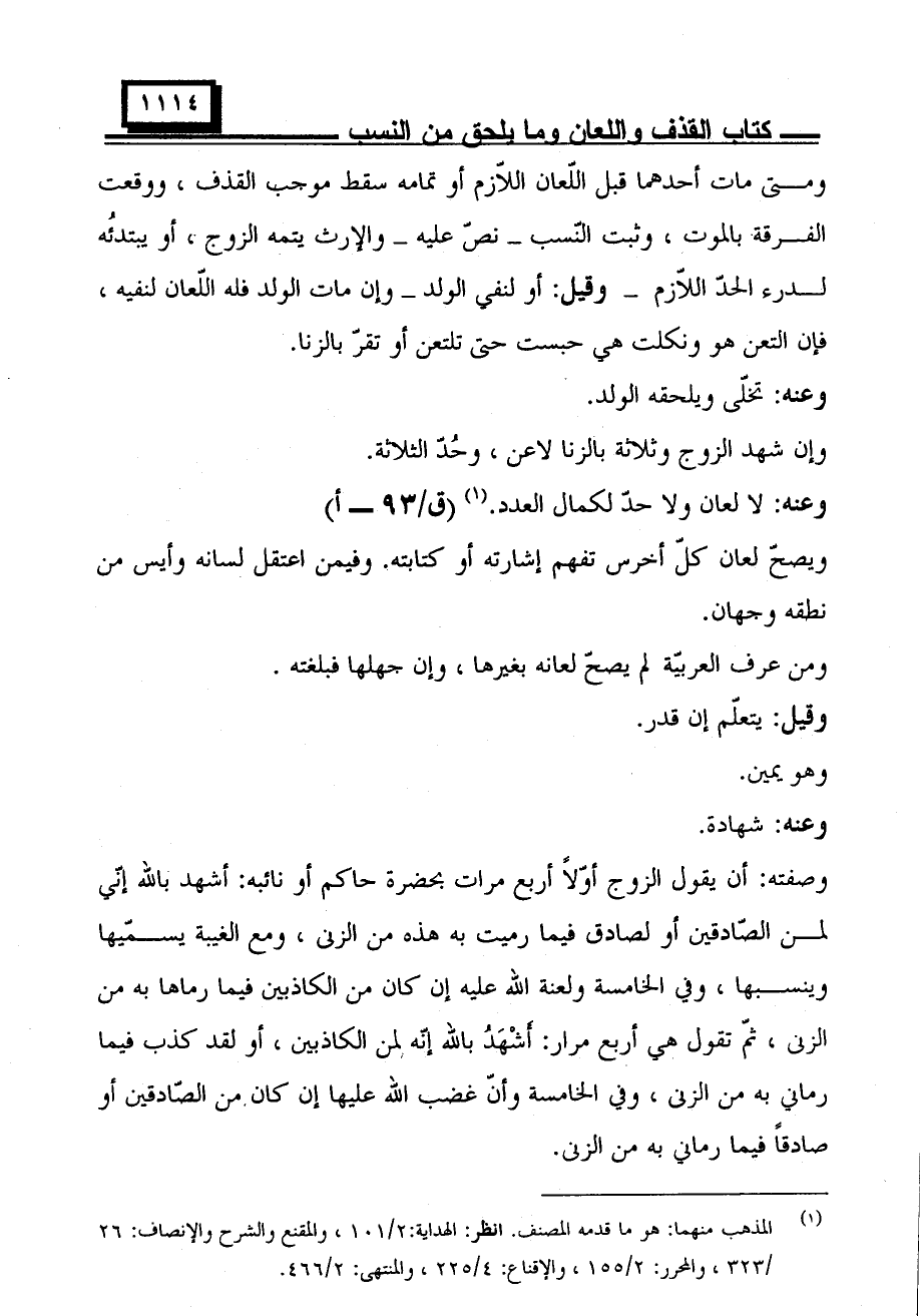 وعنه: لا لعان ولا حد لكمال العدد. (ق/٩٣ - أ).