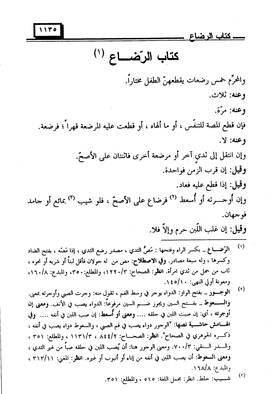 والمحرم خمس رضعات يقطعن الطفل مختارا.