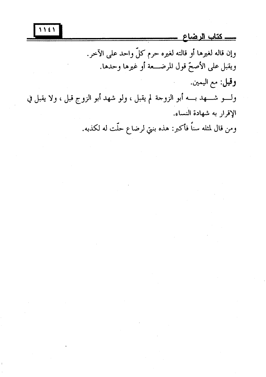 ومن قال لمثله سنا فأكبر: هذه بنتي لرضاع حلت له لكذبه.