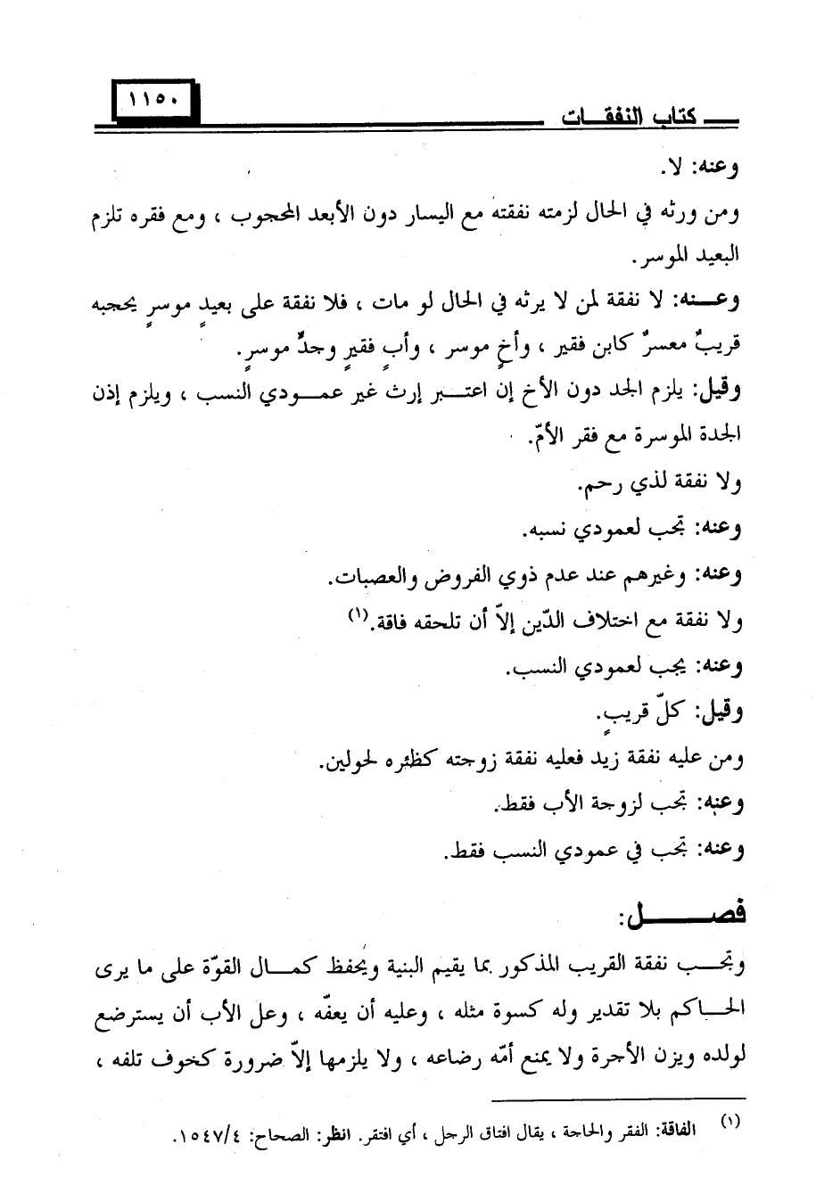 وعنه: لا نفقة لمن لا يرثه في الحال لو مات، فلا نفقة على بعيد موسر يحجبه قريب معسر كابن فقير، وأخ موسر، وأب فقير وجد موسر.