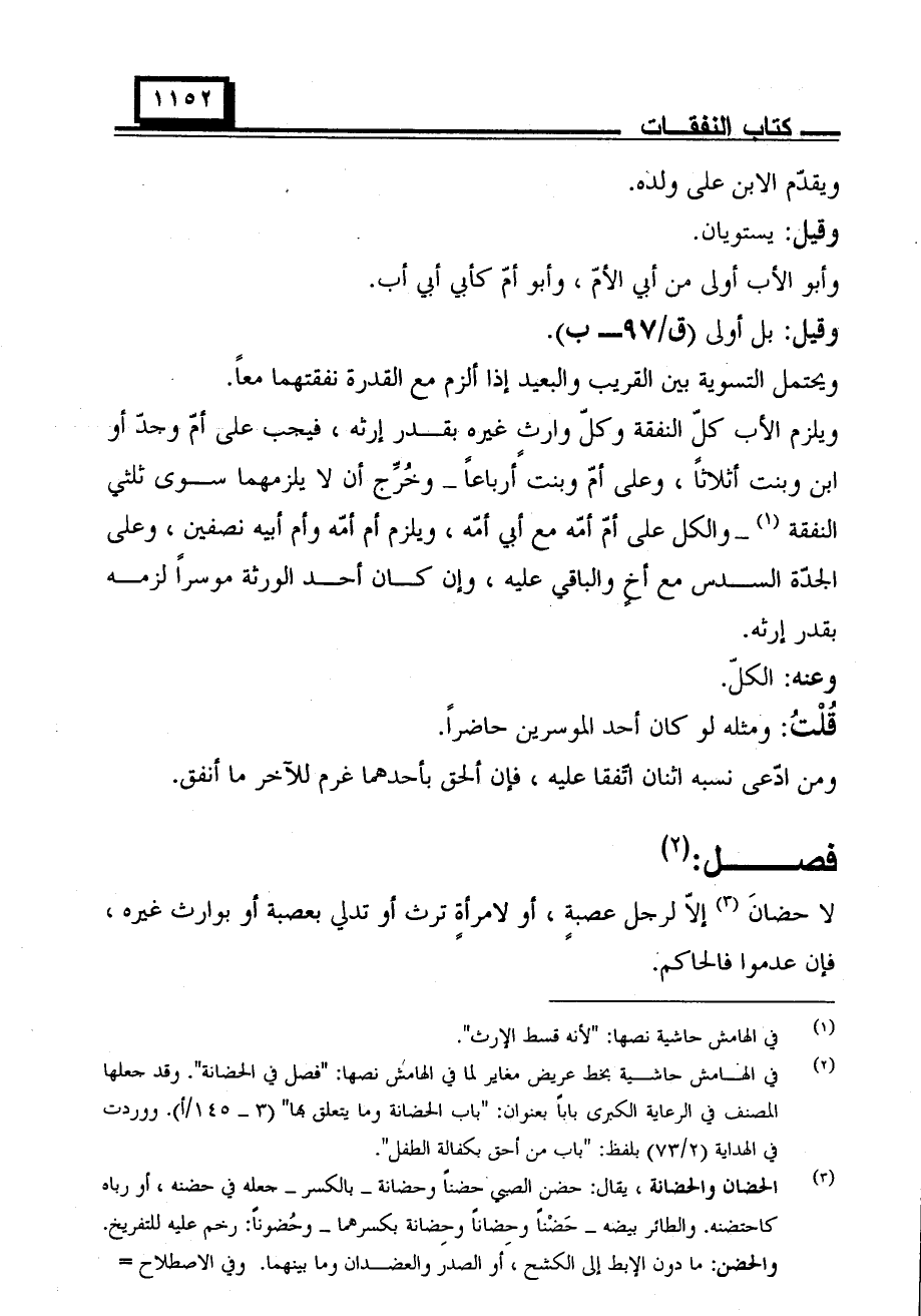 لا حضان إلا لرجل عصبة، او لامرأة ترث أو تدلي بعصبة أو بوارث غيره، فإن عدموا فالحاكم.