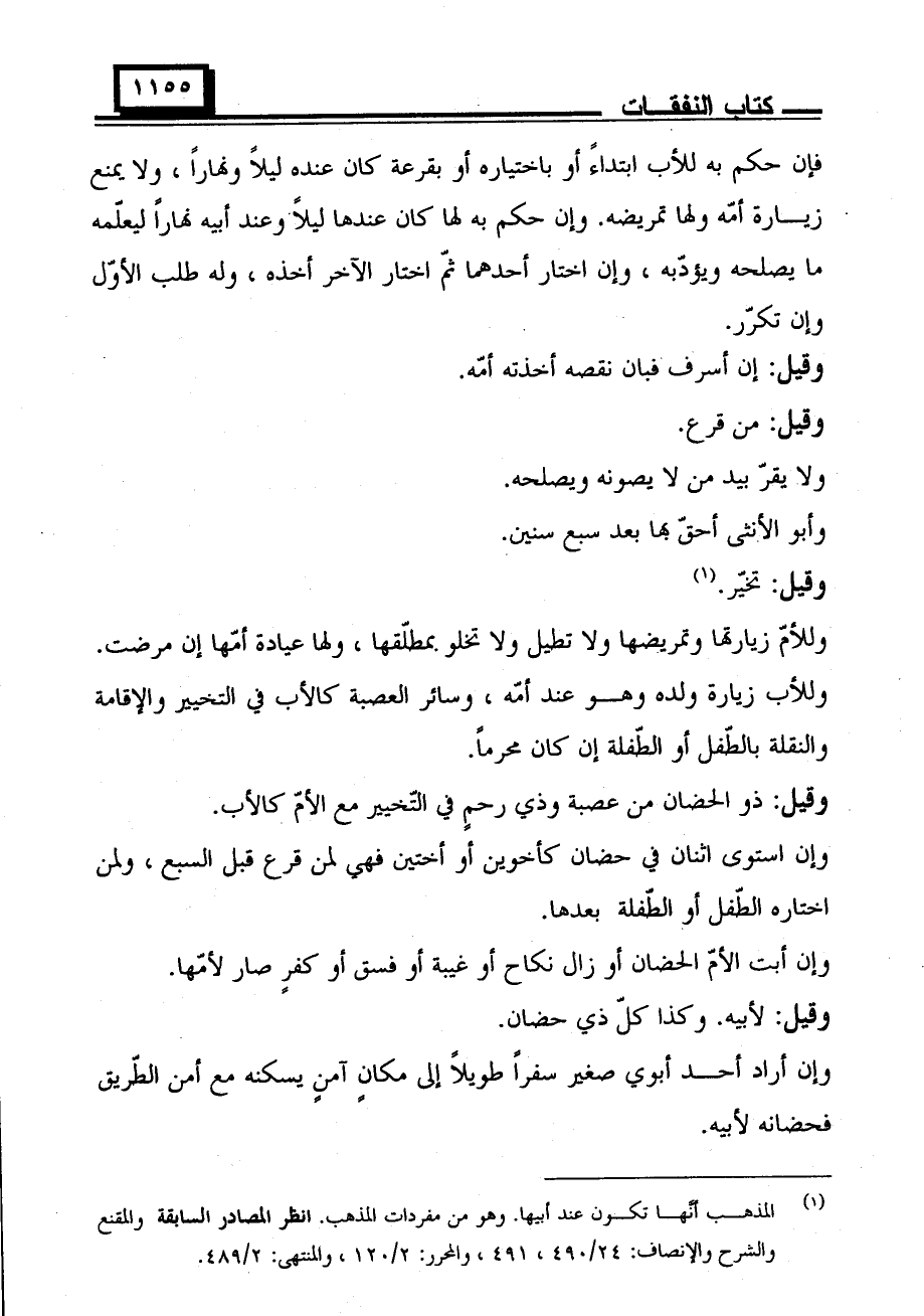وإن أراد أحد أبوي صغير سفرا طويلا إلى مكان آمن يسكنه مع أمن الطريق فحضانه لأبيه.