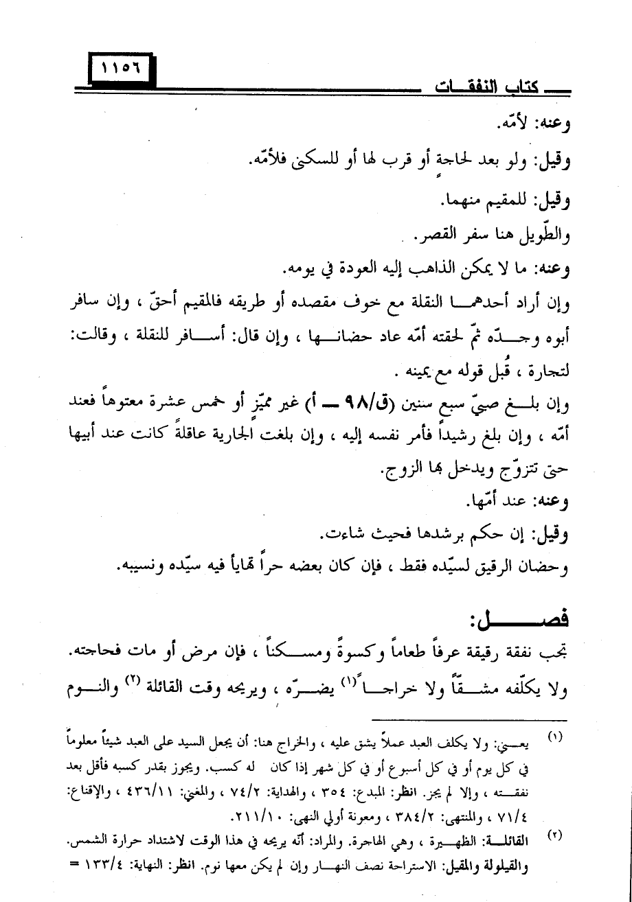 وحضان الرقيق لسيده فقط، فإن كان بعضه حرا تهايأ فيه سيده ونسيبه.